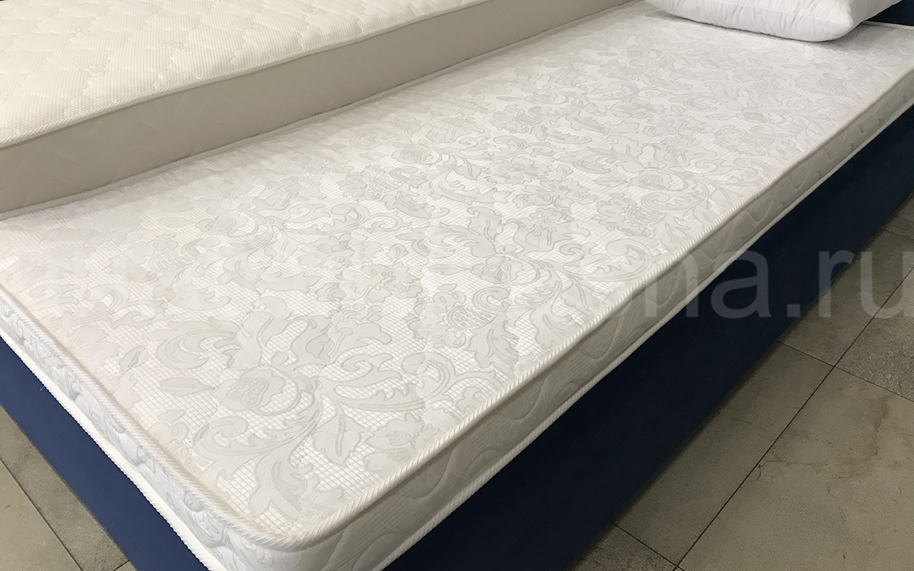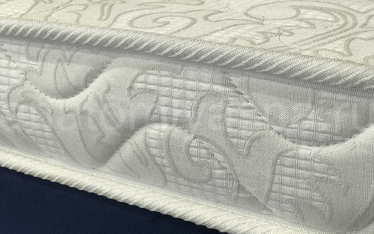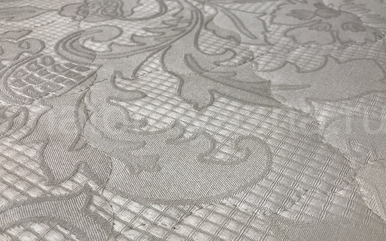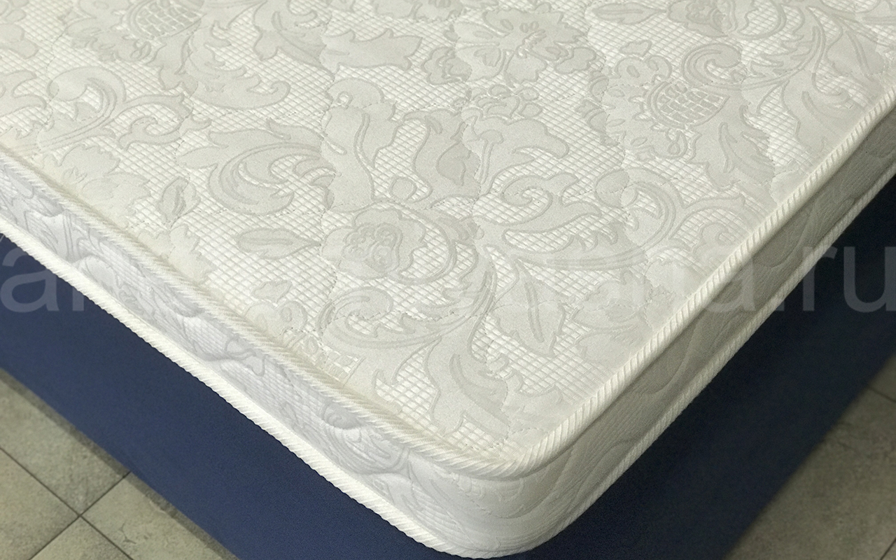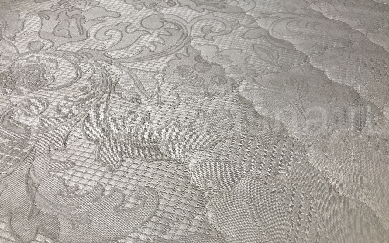 Верхнее покрытие матраса хлопковый жаккард - высокопрочная натуральная ткань, состоящая из хлопчатобумажного волокна с особым способом переплетения волокон. Хлопковый жаккард может быть двойным (дублированным) или недублированным. Как правило, дублированный жаккард используют в качестве верхнего покрытия для матрасов, чехлов и наматрасников. Особенность материала заключается в том, что рисунок, получаемый в результате переплетения нитей волокна, одинаковый с лицевой и изнаночной стороны. Самой важной характеристикой ткани является его экологичность и износостойкость.